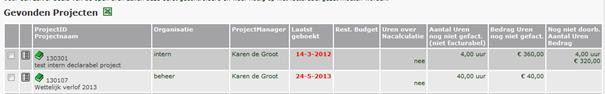 Je ziet een overzicht van de projecten met rechts daarvan een aantal kolommen. In de kolom “aantal uren nog niet gefactureerd” zie je voor welke project er nog gefactureerd kan worden.
